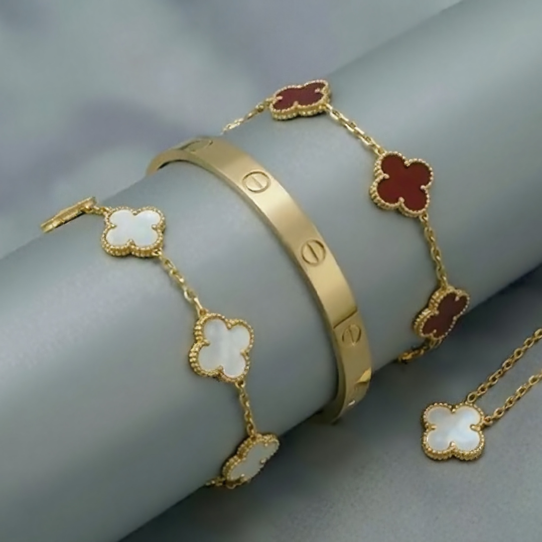 Complete your jewelry collection with the Other Bracelets Collection in gold. Each bracelet is thoughtfully designed to offer a unique blend of sophistication and versatility, perfect for layering or wearing alone. Made with 18k gold plating, these bracelets elevate your style with a radiant finish that complements any look—whether casual or formal.