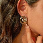 Embrace hypnotic elegance with the Tilly Gold Earrings. Their spiraling design draws the eye inward, creating a sense of depth and allure. The sparkling diamond accent adds a touch of timeless brilliance to this 18k gold masterpiece. Ethically sourced, waterproof, and skin-friendly, they offer guilt-free luxury.